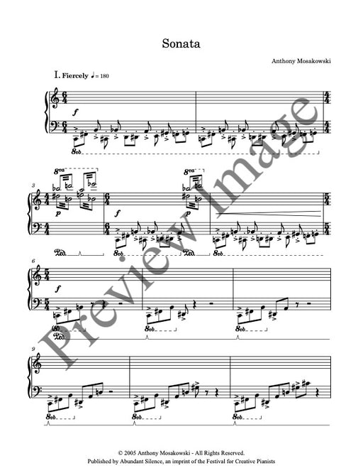Anthony MosakowskiOriginal price $21.00 - Original price $21.00Original price$21.00$21.00 - $21.00Current price $21.00| /Sonata, by Anthony Mosakowski For Solo Piano, Early Advanced, 12 Pages ...............................................................................